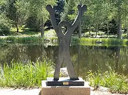 Statue of Peter on the shore of Peter's Pond at Yampa River Botanic Park.