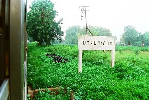 Yang Prasat was changed from a railway station to a halt on January 1, 1977.[1] Although the station ruins remain, no trains stop here.