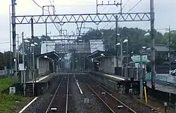 The station consists of two opposed side platforms connected to the station building by a footbridge.