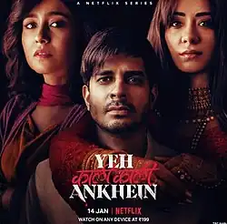 Yeh Kaali Kaali Ankhein (transl.These Black Black Eyes) is an Indian Hindi-language romantic crime thriller television series on Netflix created and directed by Sidharth Sengupta. The series stars Tahir Raj Bhasin,[1] Shweta Tripathi and Anchal Singh in the lead roles with Saurabh Shukla, Surya Sharma, Arunoday Singh and Brijendra Kala playing supporting roles.[2][3][4] The title of the series is derived from a song of the same name from the 1993 film Baazigar.[5]