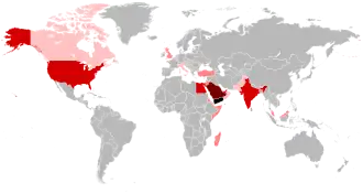 There are 7 million Yemenis living outside Yemen, including 2 million in Saudi Arabia.[2][3] In the United Kingdom there are between 70,000 and 80,000 Yemenis. An estimated 10,000 Yemenis in Birmingham, making about 1% of the city's population. Over 200,000 Yemenis reside in the United States, and around 3,000 live in Italy. Other Yemenis also reside in the United Arab Emirates, Jordan,[4] Qatar, Bahrain and Turkey—as well as Indonesia, Malaysia, Brunei, and the former USSR.