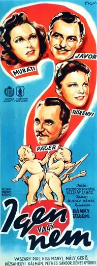 Yes or No? (Hungarian: Igen vagy nem?) is a 1940 Hungarian comedy film directed by Viktor Bánky and starring Lili Muráti, Pál Jávor and Antal Páger.[1] [2] It was shot at the Hunnia Studios in Budapest. The film's sets were designed by the art director Márton Vincze.