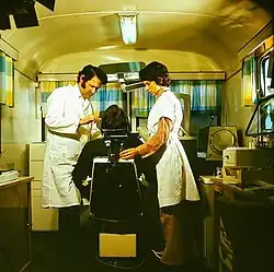 Visiting a doctor's office is allowed during regular office hours, when people may enter unexpectedly. Otherwise, a shomer is required. Mortal danger always overrides yichud laws, although there are authorities who disagree with this.[5][17] Serious illness, on the other hand, does not alleviate the prohibition of yichud. An exception is, according to Moshe Feinstein, a male patient who has been diagnosed as impotent, but in this case marit ayin calls for carefulness. A dependent adult person in need of care should take a caregiver of the same gender. This applies also to very old men.[17] During daytime, an opposite gender housekeeper and medical staff may visit if the door is unlocked, or the neighbors have a key and are asked to come in unannounced from time to time.[7] Some poskim are lenient when it comes to a doctor's interaction with his patients, since he is supposedly consumed by his work and not likely to think sinful thoughts. They invoke Gemara, which applies this reasoning to allow a professional to mate animals, although it is otherwise forbidden to watch animals mate.[5]