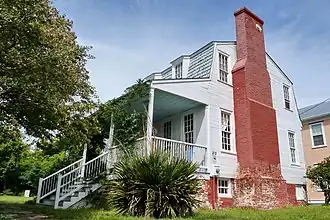 York-Gordon House, more accurately known as the Patrick and Mary Gordon house, is a historic dwelling located at New Bern, Craven County, North Carolina. It was built in 1771, as documented by a letter from Patrick Gordon to William Hooper. Early title research suggested that the house was much older and belonged to Susan York; she evidently lived in an earlier house on this site; her house was probably destroyed in the great storm of 1769. The 1771 house is a 1+12-story, five-bay, frame dwelling with a gambrel roof and Georgian style design elements. A Federal chimneypiece replaced an earlier Georgian chimneypiece in the early 19 century. The house is sheathed in shiplap siding over brick-filled walls, rests on a brick over ballast stone foundation and features a full-width, one-story shed-roof porch, which was added 1786, based on estate records.[2]