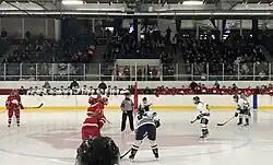 On February 11, 2000, the Ontario University Athletics women's ice hockey program saw its longest game take place. The University of Toronto's Rhonda Mitchell scored on a 35-foot slap shot. It was the 5:07 mark of the eighth period and the Varsity Blues defeated York University. Although the victory allowed the U of T to advance to the OUA gold medal game, it was the longest in the history of Canadian women's hockey (since broken).[1] The game lasted over five hours and ten minutes. York's player of the game was goaltender Debra Ferguson,[2] as she valiantly made 63 saves over 125 minutes.