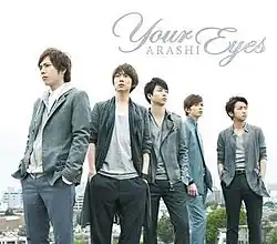 "Your Eyes" is the 39th single by the Japanese boy band Arashi. It was released on June 6, 2012 by their record label J Storm. "Your Eyes" is the theme song for the drama Mikeneko Holmes no Suiri starring Arashi member Masaki Aiba. The single comes in two editions. The Regular Edition comes with the B-sides "voice" and "Hanabi" (花火) and the instrumental versions for both songs. The limited edition comes with a promotional video, the B-side "Kimi ga Iru Kara" (君がいるから), and a 16-page booklet. The song debuted at No. 1 on the Oricon weekly charts, selling 477,820 copies in its first week.[1]