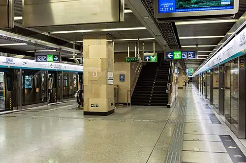 Yuanmingyuan Park station[1] (simplified Chinese: 圆明园站; traditional Chinese: 圓明園站; pinyin: Yuánmíngyuán zhàn) is a station on Line 4 of the Beijing Subway.[2] The station is located outside of the south entrance to the Old Summer Palace in Haidian District of Beijing, and immediately faces the Zhengjue Temple (正觉寺) to the north; the main campus of Peking University is to the south. There are three station exits: A, B, and C.