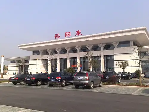 Yueyang East railway station (Chinese: 岳阳东站) is a railway station located in Yueyanglou District, Yueyang, Hunan Province, China. It is on the Wuhan–Guangzhou high-speed railway, a segment of the Beijing–Guangzhou high-speed railway. The station opened in 2009.[1] It is also the last station in Hunan before the train crosses the border to Hubei Province at Chibi North railway station.