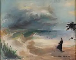 She continued to show in group exhibitions in the 1940s, including shows at the National Institute of Arts and Letters in 1950 and the Carnegie Institute in 1947 and 1949.[29] In 1947 a critic said her painting "Introspection" revealed "great delicacy."[30] In 1954 she produced the cover art for the Fall-Winter issue of the The Paris Review and in 1960 she contributed paintings to an exhibition called "Artist Families", subtitled "Famous Families in American Art", at the Dallas Museum of Fine Arts.[31][32]