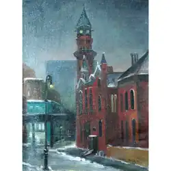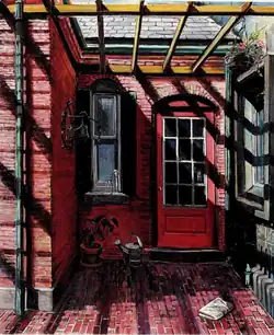 Yvonne Pène du Bois (1913–1997) was an American artist who specialized in architectural subjects and landscapes. She received her art education privately from her father, Guy Pène du Bois, and as a student at the Art Students League. She once said that her three greatest influences were her father, artist Edward Hopper, and architect Hugh Ferriss. She said she intended her paintings to evoke emotions and to be expressive rather than analytic. She worked almost entirely in oil-on-canvas. She painted in her studio from sketches made in the field.
