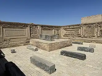 This inscription was written in 1680.[1] The second tombstone was also used for the second time, and it has a marsiya (elegy) written on it. The owners of the Joibori estate donated many lands to Zaynab Sultan Khonim and received salaries from the waqf funds.[2] After Uzbekistan gained independence, restoration work was carried out at the mausoleum. In 1999, all the buildings of the mausoleum were restored. The walls of the mausoleum have been preserved until now, and no part of them has been restored.[3]