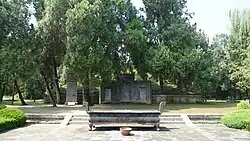 "The indications regarding the year of his passing differ, but Shih Chih-mien (1961), p. 268 shows beyond doubt that he died in 113 B.C. His tomb is situated in Chang-chia ts'un 張家村 near Ch'eng-ku . . . ; during repairs carried out in 1945 a clay mold with the inscription 博望家造 [Home of the Bowang (Marquis)] was found, as reported by Ch'en Chih (1959), p. 162." Hulsewé and Loewe (1979), p. 218, note 819.