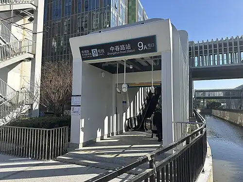 Zhongchun Road (Chinese: 中春路; pinyin: Zhōngchūn Lù) is a station on Line 9 of the Shanghai Metro, and on the Airport Link Line of the Shanghai Suburban Railway. The station is located at the intersection of Husong Highway and Zhongchun Road in Qibao, Minhang District. It was first opened on December 29, 2007, as part of Line 9. The station became an interchange station when the first phase of the Airport Link Line opened on December 27, 2024.