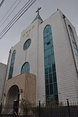 Zhonghelu Church (Chinese: 中和路教会) is a Protestant church located in Fushun, Liaoning Province, China. The current building was completed in 1998, after absorbing the Yingkelu Church. The church celebrated its 130th anniversary in 2012.