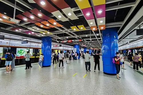 Zhujiang New Town Station (Chinese: 珠江新城站; Cantonese Yale: Jyūgōng Sānsìhng Jaahm) is an interchange station between Line 3 and Line 5 of the Guangzhou Metro. It started operations on 26 December 2005 and is located under the junction of Huaxia Road (华夏路) and Huacheng Avenue (花城大道) in Zhujiang New Town, Tianhe District, Guangzhou.[1][2]