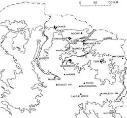 Zvongombe is an archaeological site in Mashonaland Central, Zimbabwe, located near the Zambezi River. It is the home of a 15th-century namesake city. It is believed to have been settled around 1450.[1] The decline of Great Zimbabwe in the 15th century led to the establishment of the Kingdom of Mutapa. According to oral tradition, around 1420, Chibatamatosi sent Nyatsimba Mutota north to look for salt.[2] He found salt 300 miles (480 km) north by a tribe of elephant hunters near the Zambezi River in a gold-rich area.[3] Nyatsimba Mutota took some of his people and moved to the modern-day Centenary area, settling the first capital at Zvongombe.[2]